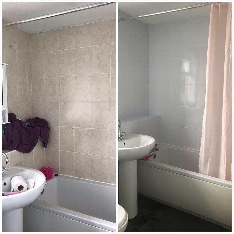 Light Grey Tile Paint / She will paint the 'pink tile' bathroom light french gray.